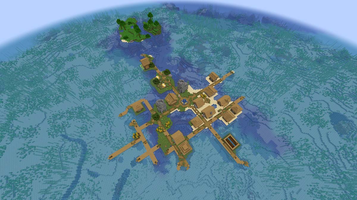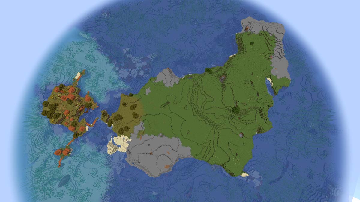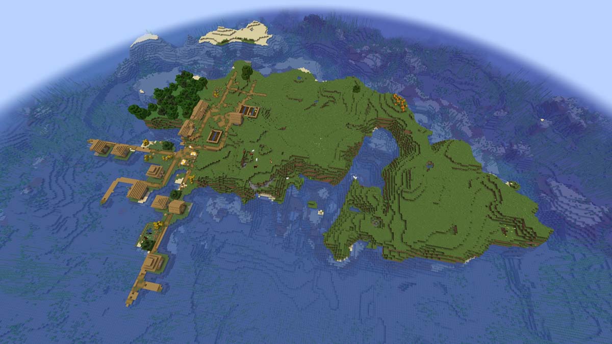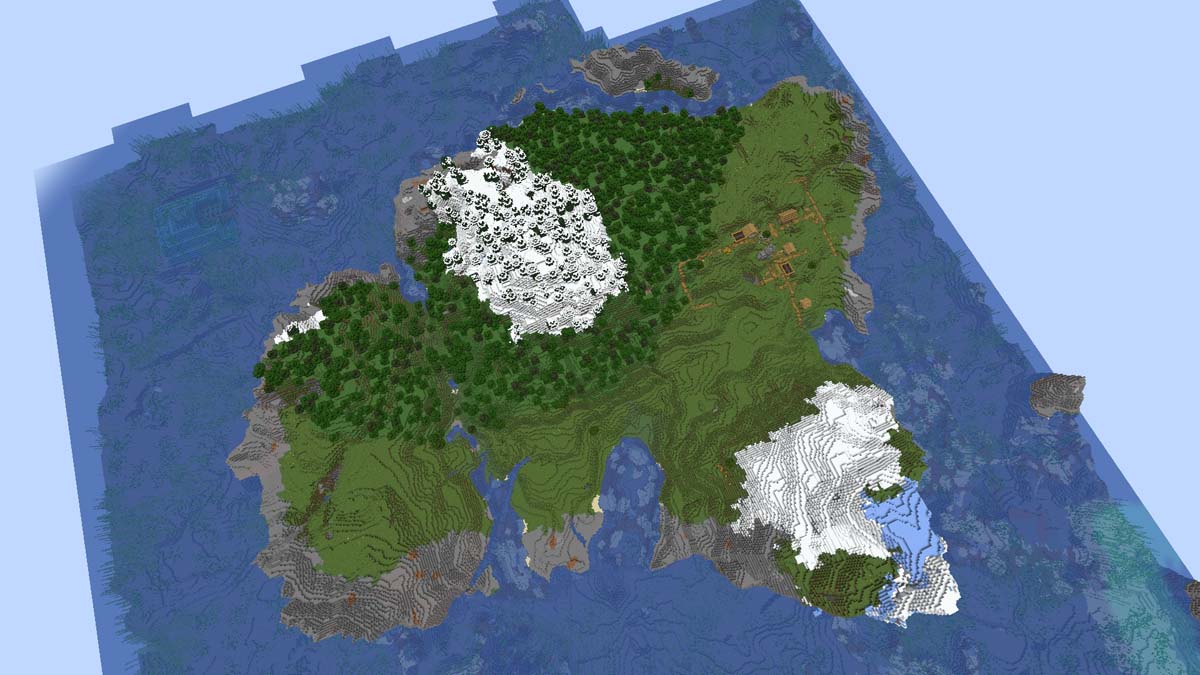 Если вас привлекают небольшие острова, но вы предпочитаете, чтобы на них было сообщество, то этот сид — отличный выбор для вас. Когда вы изначально появляетесь на берегу океана материка, путь к островной деревне, расположенной по координатам X: 0 Z: 48, не займет много времени.
