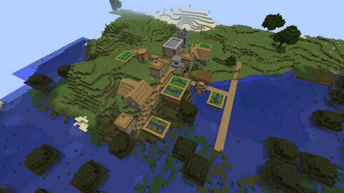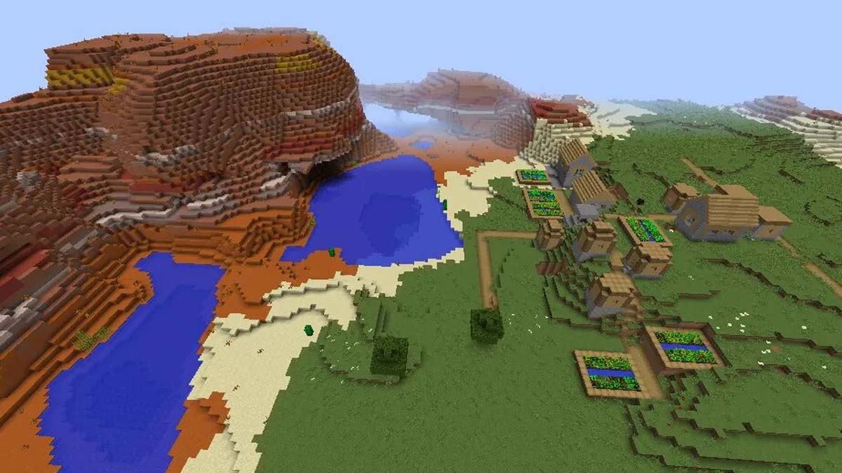 Этот сид Minecraft выделяется своим удобно расположенным входом в шахту, расположенную под деревней. Не стесняйтесь копаться в нем на досуге и обнаружить все его скрытые сокровища.